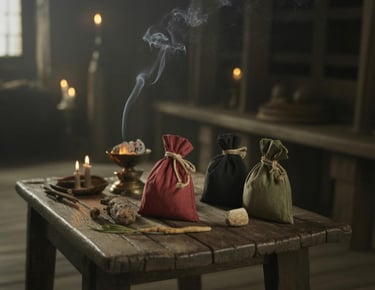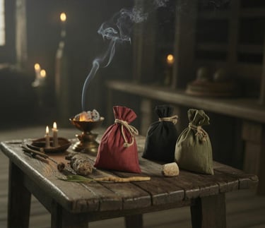 Las bolsas Mojo o gris-gris son amuletos mágicos tradicionales usados en Hoodoo, Vudú de Luisiana y prácticas afrodescendientes.